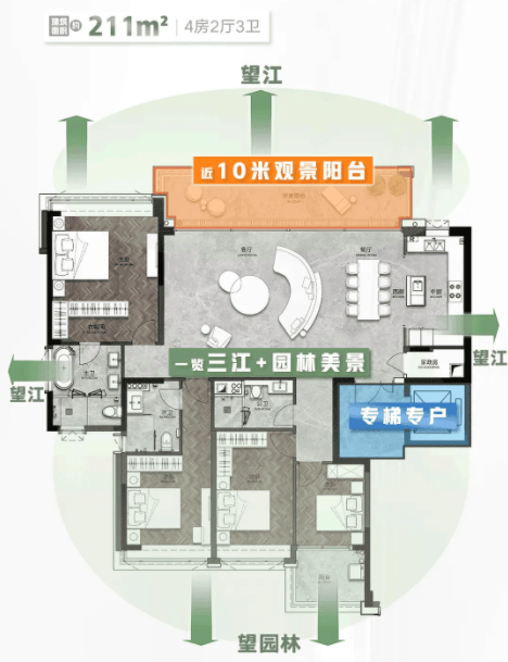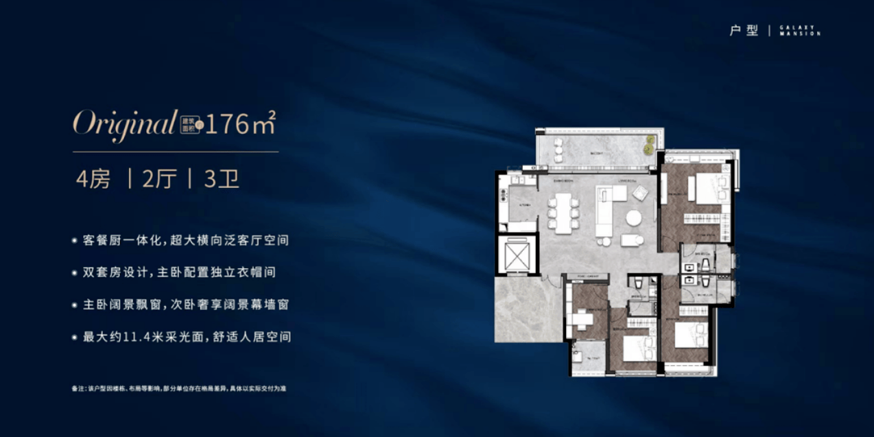 星河江缦正在产物定位上很是清晰,目前正在售的均为四房三卫大平层,涵盖建面176-235㎡多个户型。这一面积段精准地击中了改善型家庭的焦点需求。跟着二胎、三胎政策的铺开以及老龄化社会的到来,家庭数量添加,对栖身空间的要求也越来越高。保守的三房户型曾经难以满脚多代同堂或多孩家庭的需要,而四房三卫的大平层则完满处理了这一痛点。四个房间能够别离做为从卧、儿童房、白叟房和书房,每小我都有的私家空间,互不打搅。三个卫生间的设想,避免了早高峰列队洗漱的尴尬,提拔了糊口的便当性。