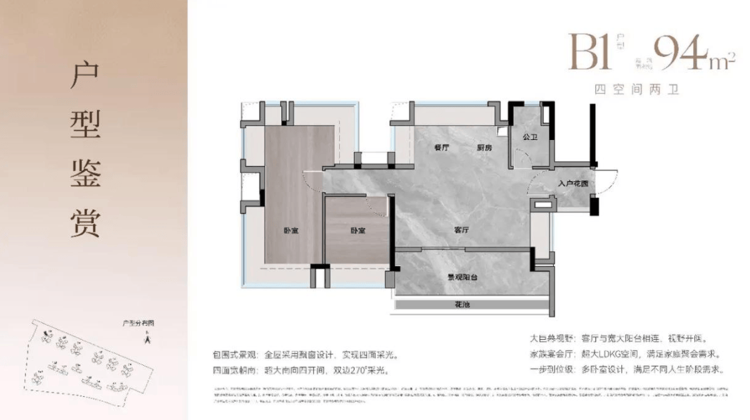 跟着二孩政策的铺开和三胎政策的实施,四房户型越来越遭到市场的青睐。广州地铁珑岄上城的94㎡四房两卫户型,完满处理了多生齿家庭的栖身痛点。